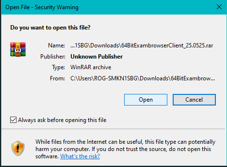 2. setelah aplikasi di download buka file aplikasi yang bernama : 64BitExambrowserClient_25.0525.rar